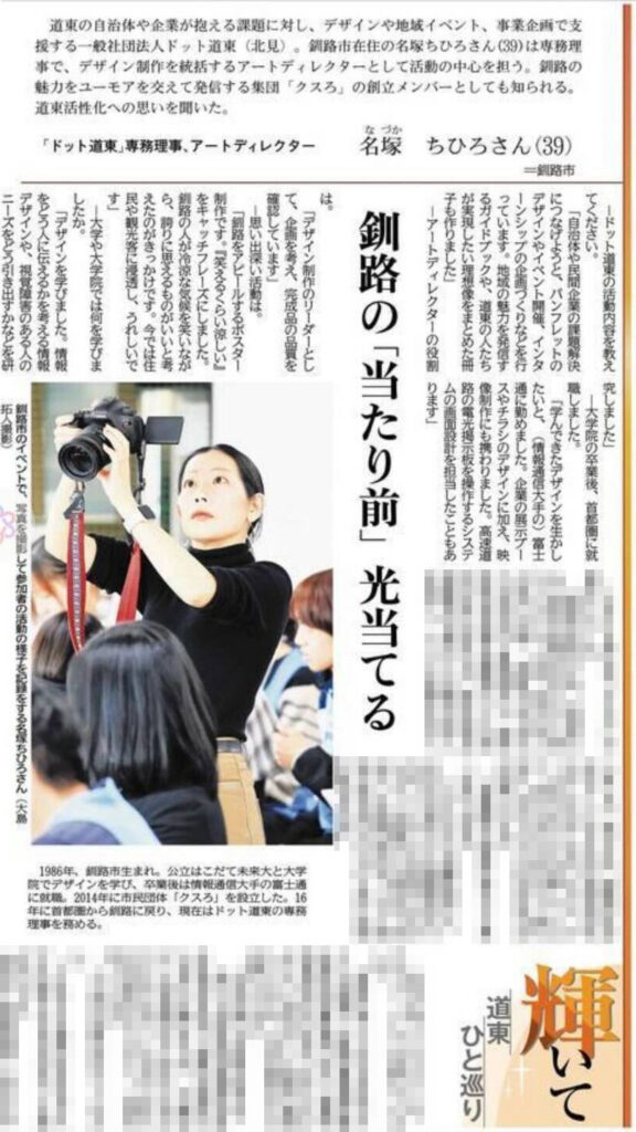 2025年12月7日(日)北海道新聞にて、アートディレクター名塚をご紹介いただきました。